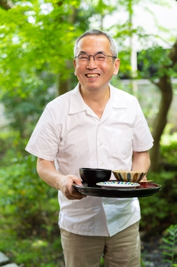 Yoshiharu Doi was born in Osaka in 1957. After graduating from the Faculty of Education Ashiya University, at the age of 20 he travelled to Switzerland to train as a chef. On returning to Japan, he worked in Osaka. His work promoting home cooking has included appearing for 34 years on the TV Asahi programme Okazu no kukkingu. He has also worked to promote Japanese cuisine abroad. In 2022, he was selected for a Commissioner for Cultural Affairs Award in recognition of his outstanding achievements in the cultural field.